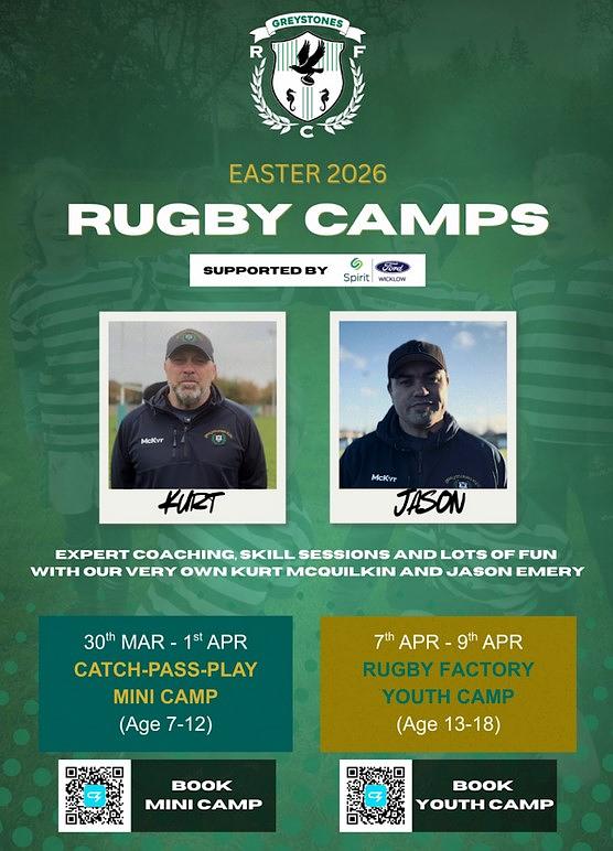 The camps will be overseen by Kurt McQuilkin and led by experienced coaches and veteran camp organiser Jason Emery, who bring extensive expertise from elite levels of rugby. They will be supported by Greystones Rugby Club Development Officers, ensuring an optimal coach-to-player ratio for high-quality instruction.
